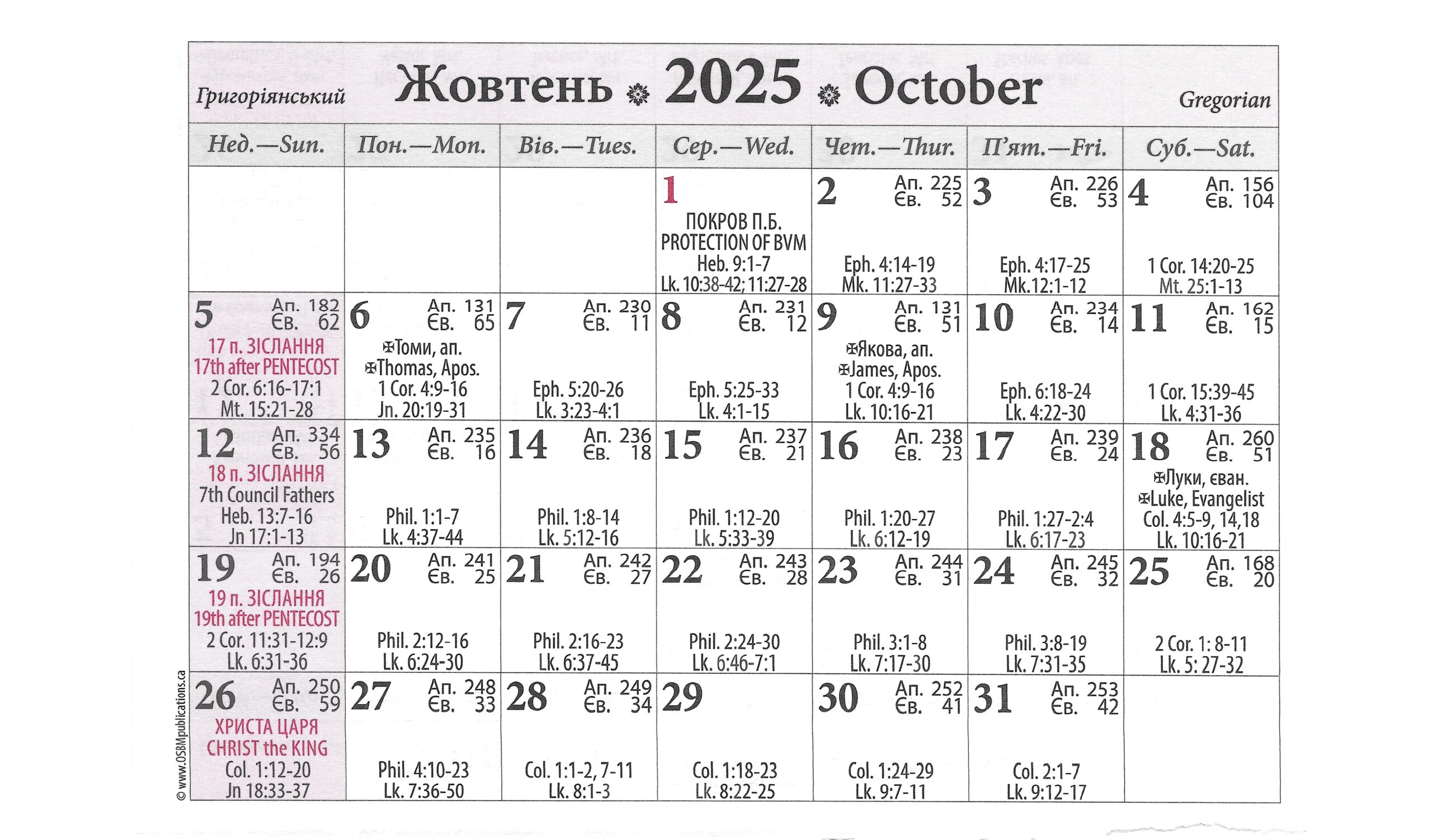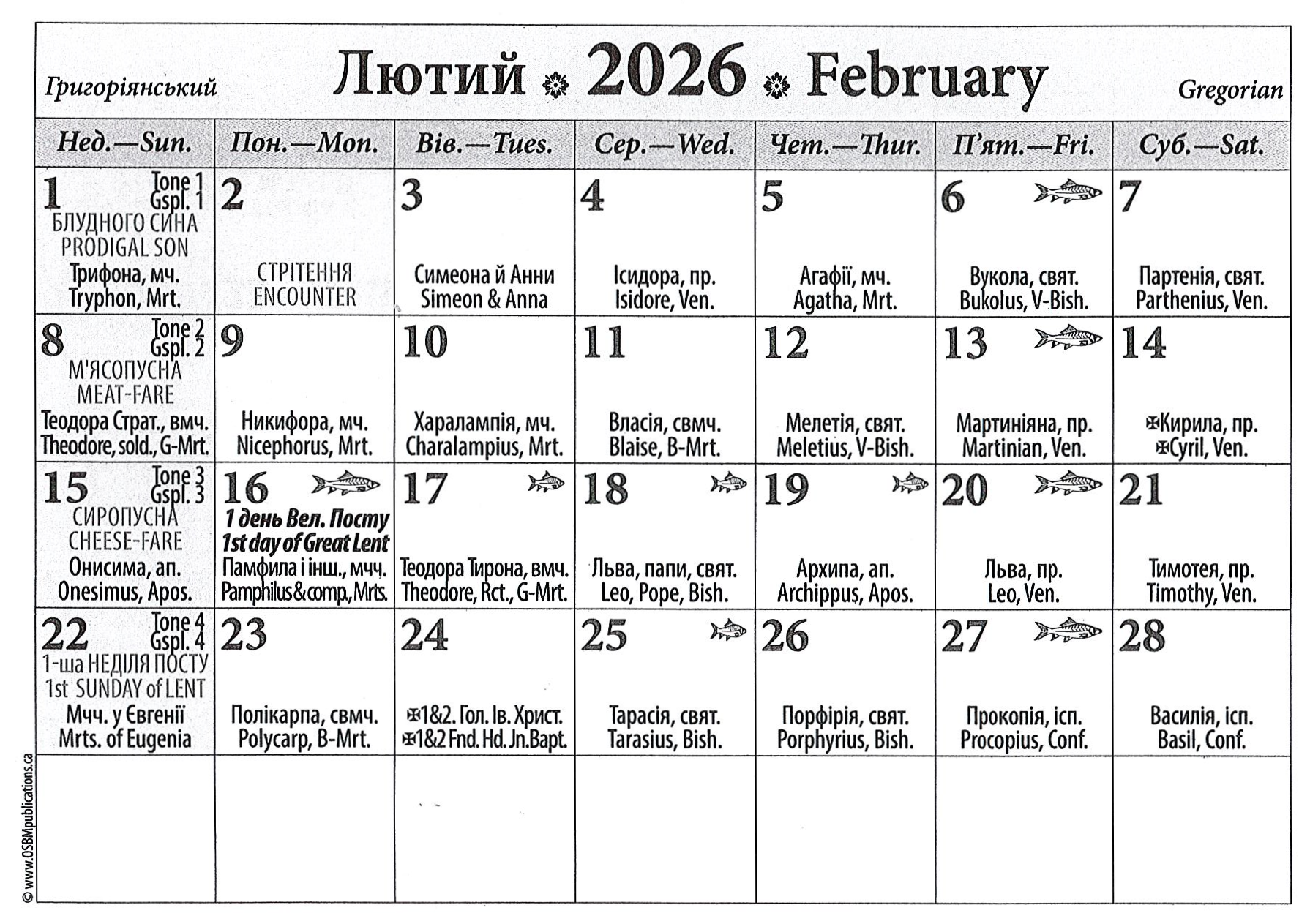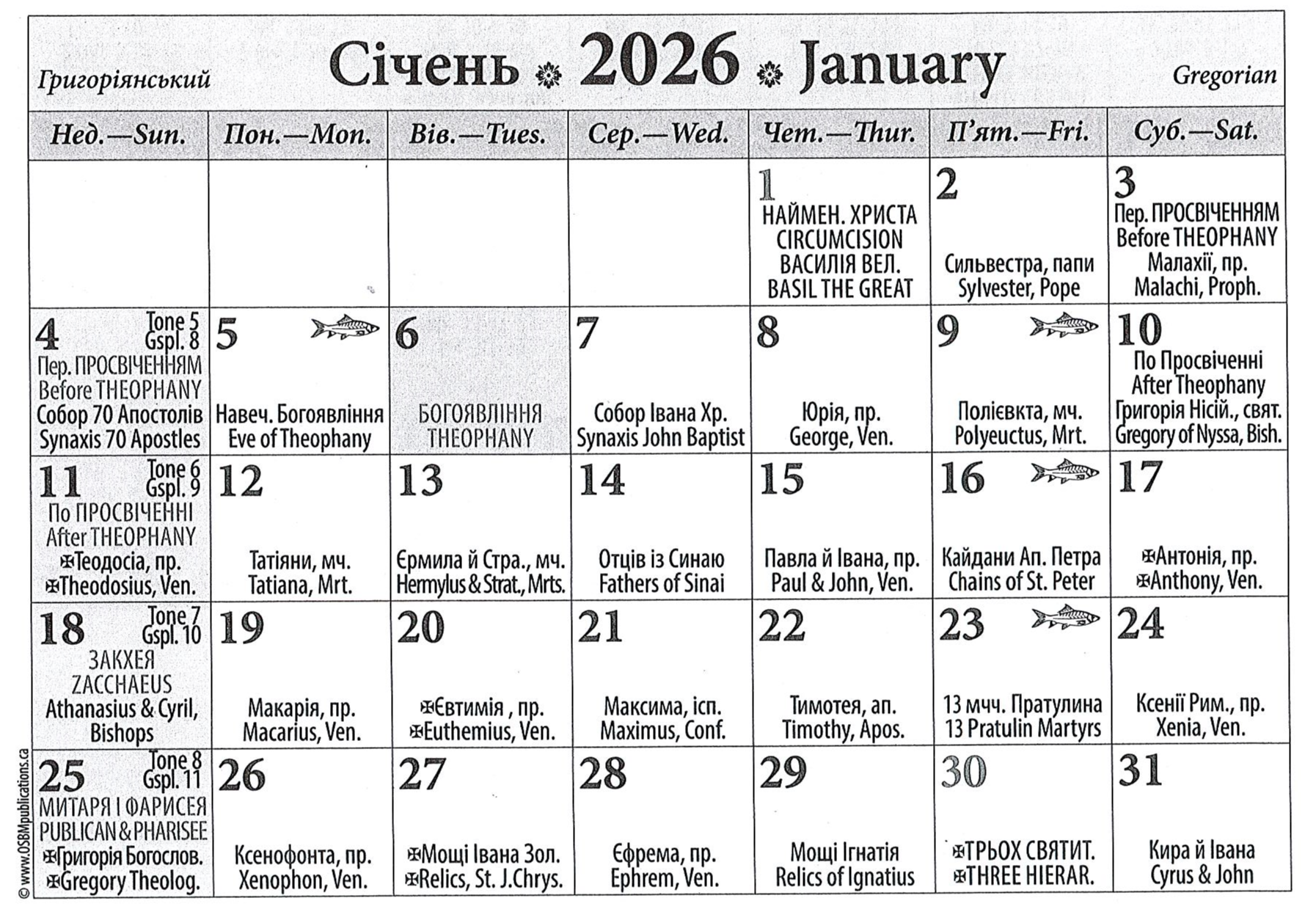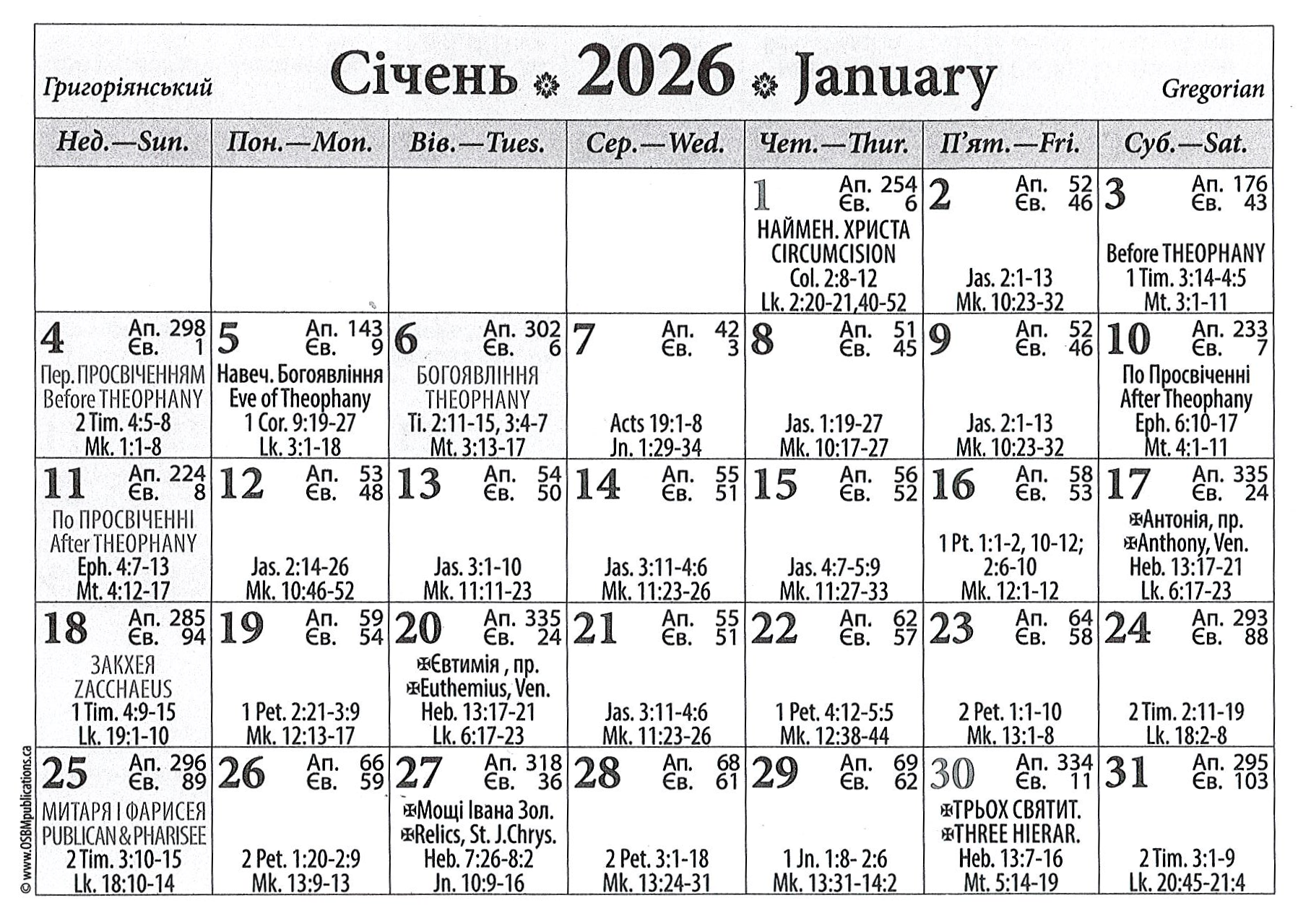 HOLY DAYS & OBLIGATORY FEASTS / Свята Обовʼязкові: