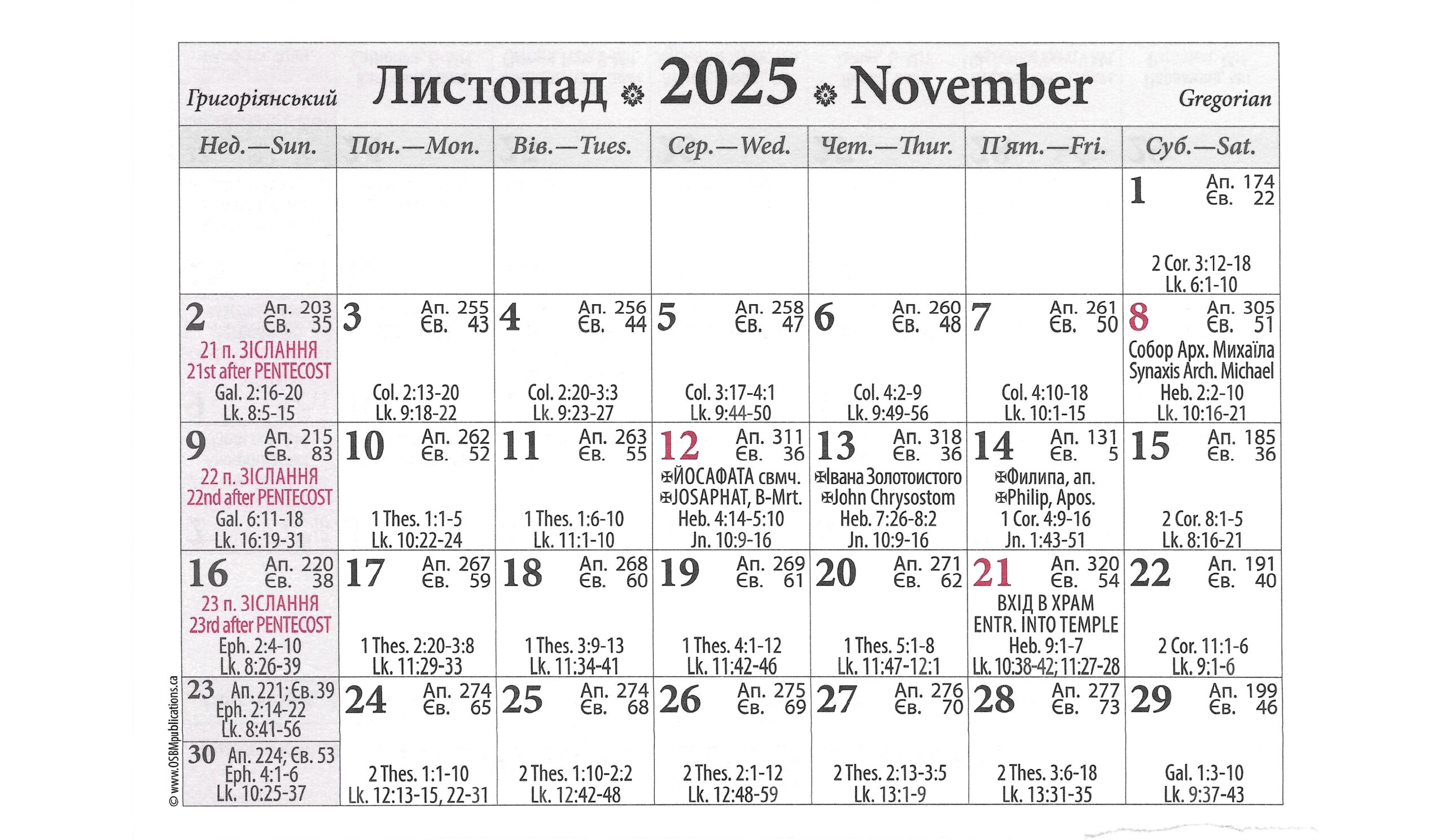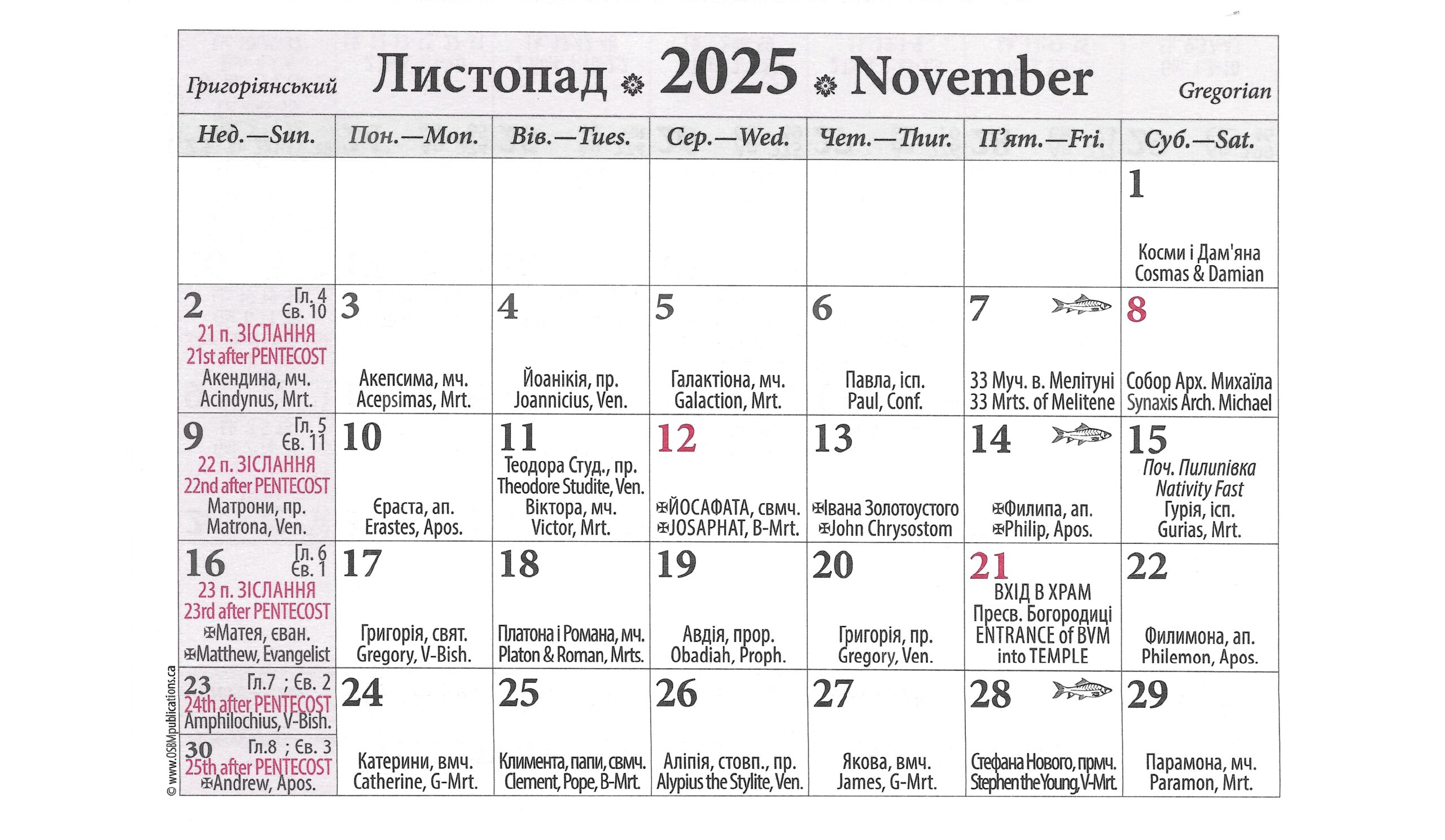 SUNDAYS: 8:00 AM (UKR), 10:00 AM (UKR), 12:00 PM Noon (ENG)